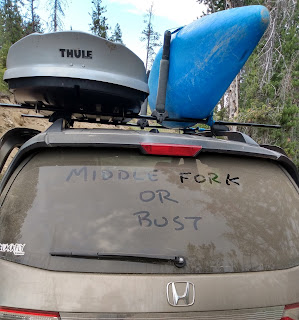 The main event of Los Flemings summer 2019 was the Middle Fork of the Salmon River. Six days to go nearly 100 miles through a portion of the Frank Church River of No Return Wilderness in central Idaho. We had a full complement of 24 in our party with 6 rafts, 5 kayaks, 3 duckies and one SUP. We had a nice medium flow, beautiful weather and a solid group of fellow river runners.